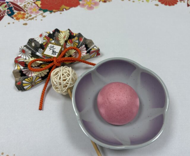 🍡 おやつ:紅まんじゅう ふっくらと蒸しあげた紅まんじゅうは、おめでたい紅色が目にも鮮やか。やさしい甘さが、心にほっこりとした余韻を残します。